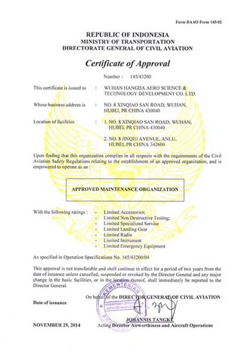 2001年10月 公司獲中國(guó)民航總局授權(quán)的民航維修許可證。